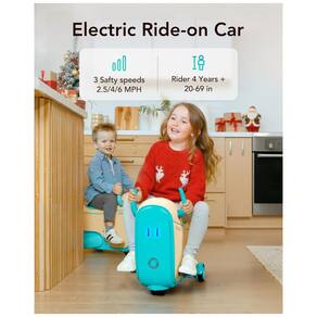 O conjunto utiliza bateria recarregável de 13000mAh, que alimenta o motor e pode funcionar como power bank para recarga de dispositivos eletrônicos portáteis compatíveis. Sob o assento há um compartimento com capacidade de 14 litros, destinado ao armazenamento de brinquedos, roupas e itens de uso pessoal da criança.?