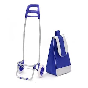 - Composição: estrutura em aço, alça em ABS, rodas em ABS/EVA, tecido em poliéster com revestimento PVC