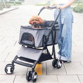 Nosso carrinho de cachorro é bem feito de estrutura de aço com revestimento de alta qualidade e tecido impermeável durável, proporcionando uma experiência confortável para seus animais de estimação. A malha ventilada oferece boa permeabilidade ao ar e mantém seus animais de estimação frescos.