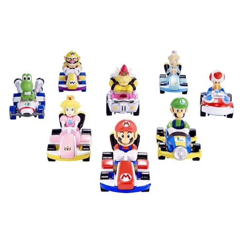 Características Adicionais: Dando asas à imaginação com esses icônicos veículos que os fãs adoram Cada veículo Mario Kart é compatível com as pistas Hot Wheels vendidas separadamente para expandir a diversão. Os carros combinam a emoção prática do desempenho da Hot Wheels e permitem reviver ou criar novas histórias com acrobacias, corridas e aventuras inspiradas no jogo. Os personagens icônicos de Mario Kart são moldados em seus karts você pode encontrar um dos favoritos dos fãs como: Mario, Luigi, Peach, Yoshi, Toad, Bowser e muito mais