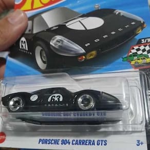 Este Porsche 904 Carrera GTS da linha Hot Wheels 2025 HW Race Day 3/10 é um tributo à era de ouro do automobilismo europeu. Com design clássico, pintura preta elegante e número 63 estampado nas laterais, essa miniatura combina história e esportividade com acabamento impecável.