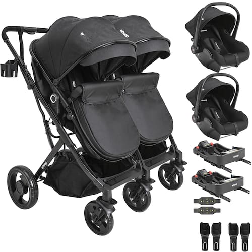 Carrinho de Bebê Kiddo Vox II Gêmeos com 2 Bebê Conforto Colinho e 2 Base ISOFIX Colinho
