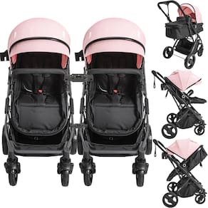 O Carrinho de Bebê Kiddo Vox II Gêmeos está disponível nas cores Preto, Marinho e Rosa.