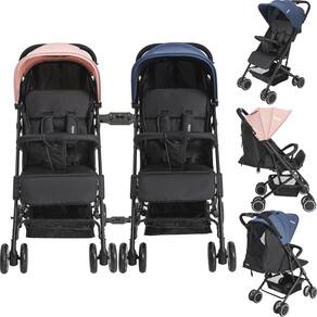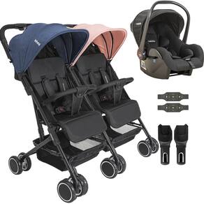 O Carrinho de Bebê Kiddo Mascote Gêmeos está disponível nas cores Preto, Grafite, Rosa e Marinho. Neste anúncio o envio é realizado no formato casal, sendo 1 unidade Rosa e 1 unidade Marinho.