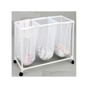 COR: Branco - Separe do seu jeito... roupas escuras, delicadas, bebe, etc. - Cestos confeccionados em tecido leve e resistente - Rodinhas para facilitar o movimento entre ambientes da sua casa. - Cestos com alcas podem ser removidos individualmente. - Estrutura em Aço leve e resistente. - Moderno, prático e fácil de usar. - Não precisa de ferramentas para montagem DIMENSÕES ESTRUTURA: 70cm de Comprimento 40 cm de Profundidade 87 cm de Altura Marca: Não Informado