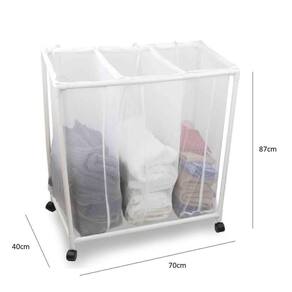 Carrinho de Lavanderia Triplo com Rodinhas e 3 Divisórias ? Organização e Praticidade