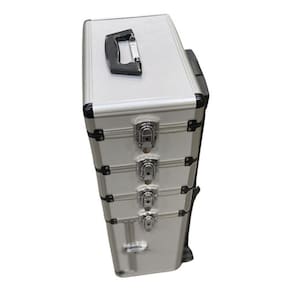 Marca Redline Profundidade 21 cm Cor Preto Comprimento da Embalagem 79 cm Largura da Embalagem 29 cm Altura da Embalagem 36 cm Peso Bruto 6,500 kg Peso Líquido 6,500 kg Material Alumínio 12 meses Características Possui bandejas empilhaveis como gavetas com diversos compartimentos para organizar os objetos e rodas para facilitar sua transferência. Certificação Produto certificado de acordo com a . Segurança OCP: Não Aplicável Registro nº 002055/2021 Origem Observações Fechos de segurança de metal, carrinho de alumínio retrátil, duas chaves incluídas 4 Maletas que se encaixam conforme necessidade 3 Maletas de 35x25x15 CxLxA + 1 Maleta: 35x25x35cm CxLxA Marca: Não Informado