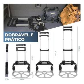 Carrinho Mão Dobrável Carga Bagagem Maleiro Compras Em Alumínio Alça Retrátil Portátil Acompanha Elástico Até 75kg Transforme o transporte de cargas em uma tarefa simples e eficiente com o Carrinho de Mão Dobrável em Alumínio. Esse indispensável utensílio apresenta-se como a solução ideal para mover objetos pesados de forma descomplicada, seja em casa, no escritório ou em qualquer ambiente que exija mobilidade e praticidade. Compacto e Resistente: Construído em alumínio resistente, este carrinho é leve, pesando apenas 3,2 kg, e ainda assim robusto o suficiente para suportar cargas de até 75kg. Sua estrutura proporciona estabilidade e segurança, garantindo uma plataforma sólida para acomodar diversos itens. Design Inteligente: Com um design dobrável, o carrinho pode ser facilmente armazenado quando não estiver em uso, ocupando mínimo espaço. Seu sistema de abertura e rebatimento automático das rodas e plataforma contribui para essa praticidade, tornando-o ideal para ambientes com espaço limitado. Versatilidade e Conforto: Dotado de três opções de regulagem de altura, o Carrinho de Mão Dobrável em Alumínio proporciona conforto ergonômico ao usuário. Acompanhado de uma corda elástica especialmente projetada, garante estabilidade para suas cargas, tornando-o um parceiro confiável em diversas situações. Rodas Duráveis e Suaves: Equipado com rodas de Plástico ABS de Alta Resistência e Durabilidade, este carrinho oferece uma rodagem suave, sem danificar o piso. Sua durabilidade garante que você não precise se preocupar com manutenção constante, permitindo um uso prolongado e eficiente. O Carrinho de Mão Dobrável em Alumínio é a escolha perfeita para quem busca praticidade, durabilidade e segurança no transporte de cargas. Não deixe a oportunidade passar e adquira agora mesmo esse aliado indispensável para facilitar o seu dia a dia. Leve e resistente, o Carrinho de Mão Dobrável em Alumínio é perfeito para transportar cargas de até 75kg. Sua estrutura robusta e design ergonômico garantem praticidade e segurança. Compre já Informações Técnicas; Capacidade 75 quilos: Estrutura Alumínio Alça Retrátil 3 Ajustes de altura Rodas Plástico ABS Emborrachadas Plataforma transporte em Alumínio Medidas aproximadas; Desmontado: Altura: 60 cm Largura: 40 cm Profundidade: 6 cm Montado: Altura: 100 cm, 85 cm ou 49 cm Largura: 40 cm Profundidade: 40 cm Peso aproximado: 3kg Itens incluso; 01 Carrinho de Mão 01 Corda Elástica 01 Cordão Elástico Importante; de 90 dias contra defeito de fabricação. Todos os produtos são testados antes do envio, evitando que você receba qualquer produto com defeito de fabricação. Marca: Não Informado Ean: 7892023112807