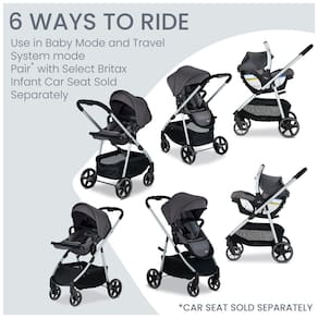 Cochecito modular para bebês Britax Grove es liviano tem 6 formas de usar cojn de material CozyFit com tecido de pontos Stone