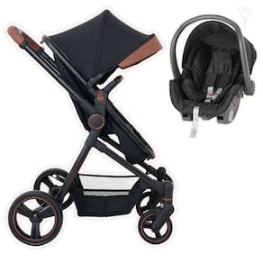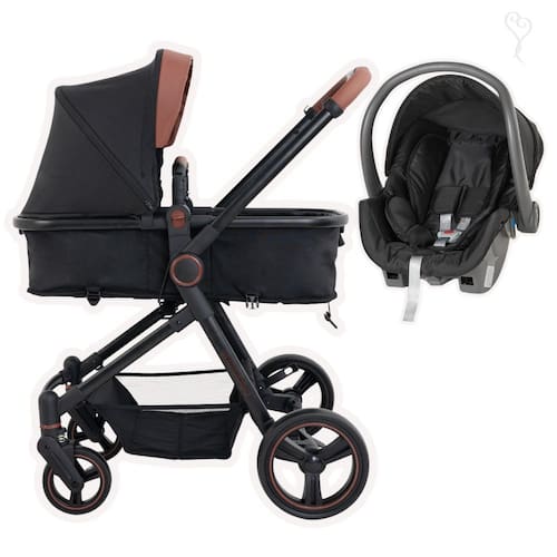 Carrinho Moises Ivy Preto e Caramelo com Bebe Conforto Cocoon - Galzerano
