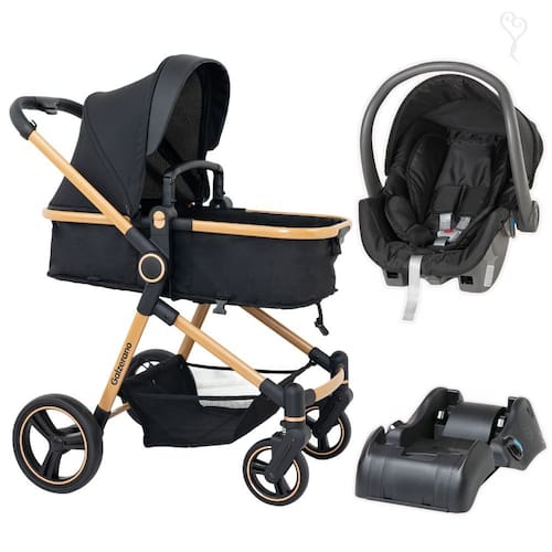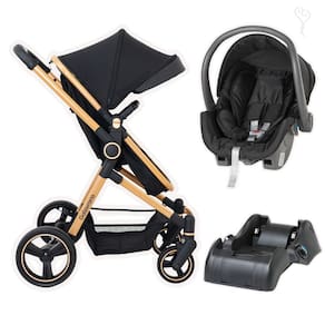 Carrinho Moises Ivy Preto e Dourado com Bebe Conforto Cocoon e Base - Galzerano