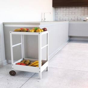 O Carrinho Completa Casa é a peça-chave em cozinhas, salas de jantar e bares residenciais com visual urbano. O carrinho é confeccionado em aço carbono com acabamento em pintura eletrostática; materiais e acabamentos que atestam sua resistência e durabilidade - atributos ideais para o dia a dia. Compacto e fácil de ambientar, ele possui 2 prateleiras que permitem apoiar copos, garrafas de bebidas, vasos, objetos decorativos e o que mais você precisar. Os seus rodízios facilitam o manuseio e deslocamento do produto de um lugar ao outro. Acabamento dos Pés: Pintura Altura dos Pés: 10 Ambiente Principal: Sala de Estar Bandeja: Bandeja Não Removível Complexidade da Montagem: Baixa: pode ser montado por uma pessoa sozinha Cor: Branco Cor do Produto: Branco Cor Interna: Branco Escala de Brilho: Semi-Brilho Itens Inclusos: 1 Carrinho, Kit Ferragens e Manual de Montagem Linha ou Coleção: Completa Casa Manual de Montagem e Instalação: https://cdn2.madeiramadeira.com.br/atributo/sedlak-representacao/1141606-completa-casa-carrinho-30x75x40.pdf Material dos Pés: Eucalipto Material Principal: Aço Necessita Montagem: Sim Origem do Produto: Nacional Pés Reguláveis: Não Peso: 4.5 Porta Rolhas/Tampinhas: Não Porta Taças: Não Porta-garrafas: Não Possui Adega: Não Possui Espelho: Não Possui Gavetas: Não Possui iluminação: Não Possui Pés: 04 Possui Portas: Não Possui Prateleiras: Não Possui Rodízio: Sim Possui Vidro: Não Recomendações de Uso, Manutenção e Limpeza: Não utilizar abrasivos na limpeza. Evitar batidas e contato com objetos cortantes. Utilizar pano umedecido com água seguido de pano seco. Rodízio com Trava: Não Sapatas Niveladoras: Não Sistema de Montagem: Parafusos Suporta Até (kg): 12 Marca: Completa Casa Ean: 7909903226704