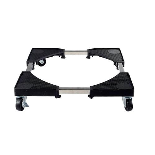 Suporte multiuso com rodas. - Fácil montagem em 4 módulos.- Possui 4 rodas com travas, produzidas em PVC.- Ajuste de largura fácil. - Facilidade na movimentação.- Dimensões: Largura dos lados:43-56 cm e 43-56 cm- Capacidade de carga:200 kg- Material: Polipropileno e tubo de aço inoxidável- Peso:1,75 kg- Cor: preto - Ideal para elevar máquina de lavar, geladeira, freezer, tanquinho, secadora ou objetos pesados. Maior praticidade para remoção e limpeza em áreas de serviço, cozinhas, varandas, entre outros locais. Livre seu eletrodoméstico da umidade que corroe e reduz a vida útil do seu equipamento. Marca: Aj Som Acessórios Musicais Ean: 7908403304806