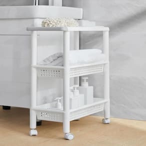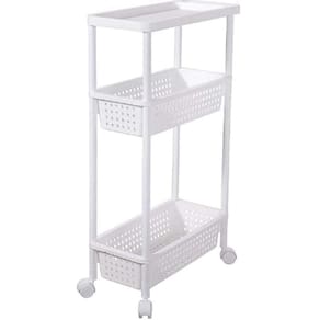 Carrinho desmontável que economiza espaço. Unidade de armazenamento com 3 prateleiras adequadas para alimentos, acessórios de banho, cosméticos, produtos de cuidado e livros, entre outros. Limpeza robusta e fácil com estrutura em PP durável; basta lavar as manchas na água. Montagem fácil e rápida, sem a necessidade de parafusos ou ferramentas; basta encaixar a moldura com conectores de plástico para completar a montagem.