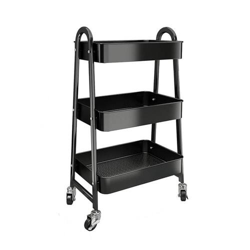 CARRINHO MULTIUSO ORGANIZADOR BRINQUEDOS SALA COZINHA MANICURE 3 PRATELEIRAS AUXILIAR EM AÇO PRETO