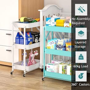 Carrinho Dobrável com 3 Prateleiras e Rodas – Estrutura Metálica Carrinho organizador com estrutura metálica dobrável, indicado para uso doméstico em ambientes internos. Possui três níveis com cestos perfurados e rodas giratórias que facilitam a mobilidade.