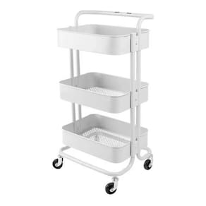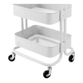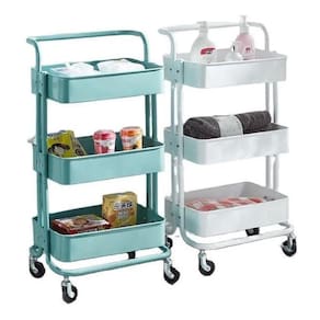 Carrinho Multiuso Organizadora 3 Prateleiras Branco Em Aço Esse anúncio corresponde a cor BRANCA. O carrinho multiuso com pintura epóxi resistente em aço 3 cores: preto, branco, turquesa, possui 3 prateleiras com bordas e fundo de superfície vazada que suportam até 10kg cada prateleira. Seu fundo possui micro furos que eliminam eventuais resíduos líquidos. O carrinho possui alça e rodízios, se tornando prático para locomoção e decorativo em seu ambiente. Ideal para diversos ambientes e para seu negócio como: sala, banheiro, quarto, lavanderia, bar, quarto de criança, salão de beleza, oficina e escritório. Basta montar e começar a organizar. CARACTERÍSTICAS: Medidas: Largura 34cm x Altura 83cm x Comprimento 43cm Espaço entre as prateleiras: 25 cm a 30cm Capacidade de cada prateleira: Até 10 kg cada Material: Aço carbono Peso: 4,5 Kg Marca: MAXIME UTILIDADES OBSERVAÇÃO: Todas as cores podem ter variações de telas e monitores devido ao brilho e contraste. Dicas: 1º Dica: Não utilizar materiais abrasivos, lã de aço, esponjas ásperas, solventes ou produtos químicos corrosivos como cloro ou água sanitária; 2º Dica: Para limpeza do mesmo utilizar pano levemente úmido, após pano seco; 3º Dica: Pode ser utilizado em banheiros, quartos, salões de beleza, lavanderia ou escritório.