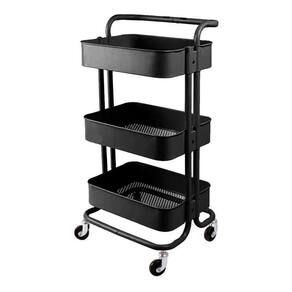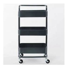 Carrinho Multiuso Organizadora 3 Prateleiras Em Aço Cor: Preto O carrinho multiuso com pintura epóxi resistente em aço 5 cores: preto, branco, turquesa, cinza e Rosa possui 3 prateleiras com bordas e fundo de superfície vazada que suportam até 10kg cada prateleira. Seu fundo possui micro furos que eliminam eventuais resíduos líquidos. O carrinho possui alça e rodízios, se tornando prático para locomoção e decorativo em seu ambiente. Ideal para diversos ambientes e para seu negócio como: sala, banheiro, quarto, lavanderia, bar, quarto de criança, salão de beleza, oficina e escritório. Basta montar e começar a organizar. CARACTERÍSTICAS: Medidas: Largura 34cm x Altura 83cm x Comprimento 43cm Espaço entre as prateleiras: 25 cm a 30cm Capacidade de cada prateleira: Até 10 kg cada Material: Aço carbono Peso: 4,5 Kg Marca: MAXIME UTILIDADES OBSERVAÇÃO: Todas as cores podem ter variações de telas e monitores devido ao brilho e contraste. Dicas: 1º Dica: Não utilizar materiais abrasivos, lã de aço, esponjas ásperas, solventes ou produtos químicos corrosivos como cloro ou água sanitária; 2º Dica: Para limpeza do mesmo utilizar pano levemente úmido, após pano seco; 3º Dica: Pode ser utilizado em banheiros, quartos, salões de beleza, lavanderia ou escritório.
