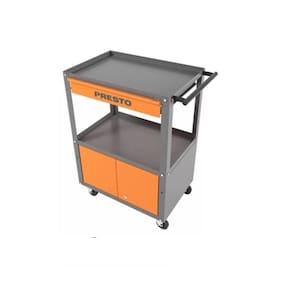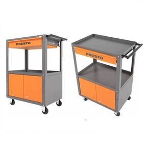 Descrição Distribuído por: Casa das Serras CARACTERÍSTICAS: - Além de ajudar a organizar e transportar ferramentas, ainda serve como bancada de trabalho - Possui 4 rodízios de 3", dois são fixos e dois são móveis - Possui gaveta e porta inferior ESPECIFICAÇÕES: :: Largura: 400mm :: Altura: 850mm :: Profundidade: 600mm + 75mm do cabo :: Carga máxima: 80Kg distribuídos