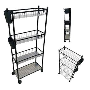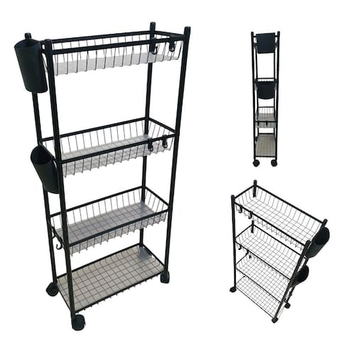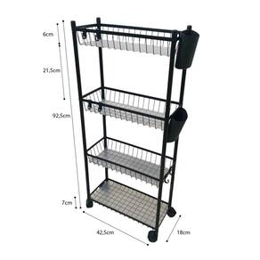 Carrinho Organizador 4 Prateleira Multiuso Cozinha Lavanderia Banheiro Ganchos E Escorredor Higiene Tempero Mantimentos