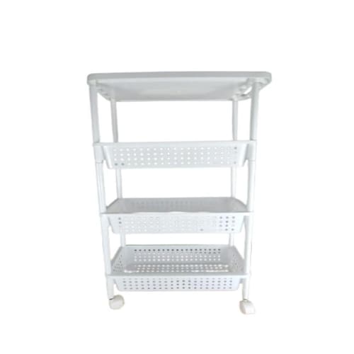 CARRINHO ORGANIZADOR 4 PRATELEIRAS MULTIUSO – BRANCOVideo Meramente IlustrativoDescrição:O Carrinho Organizador Multiuso Branco é a solução ideal para quem busca praticidade e versatilidade. Fabricado em plástico resistente, ele conta com 4 prateleiras, cada uma suportando até 20 kg. As prateleiras possuem bordas e fundo de superfície vazada com micro furos, permitindo a eliminação de resíduos líquidos e facilitando a limpeza. Equipado com rodízios, o carrinho é fácil de mover e se adapta a diversos ambientes, como salas, banheiros, quartos, lavanderias, bares, quartos infantis, salões de beleza, oficinas e escritórios.Características:Medidas: Largura: 20 cm x Altura: 95 cm x Comprimento: 50 cmEspaço entre as Prateleiras: 25 cm a 30 cmCapacidade de Cada Prateleira: Até 10 kgMaterial: PlásticoDicas de Uso:Limpeza: Evite materiais abrasivos, lã de aço, esponjas ásperas, solventes ou produtos químicos corrosivos como cloro e água sanitária.Manutenção: Utilize um pano levemente úmido para limpeza, seguido de um pano seco.Uso Versátil: Ideal para banheiros, quartos, salões de beleza, lavanderias e escritórios.Monte o carrinho e comece a organizar com eficiência e estilo! Marca: Não Informado