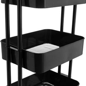 O Carrinho Organizador Versatile é multiuso e confeccionado 100% em ferro, com capacidade de 8,5 litros em cada bandeja, totalizando 25,5 litros de capacidade. O produto acompanha manual de instrução para montagem.