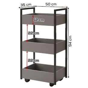 Carrinho Organizador Multiuso 3 Cestos Bp Lais 50 Cm Grafite Eratto Moveis