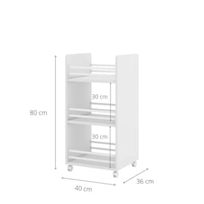 O Carrinho Organizador com Rodízios é uma opção prática e funcional para manter diversos ambientes organizados com estilo. Com três andares espaçosos, ele é ideal para armazenar itens de uso diário, como materiais de escritório, utensílios de cozinha, produtos de higiene, cosméticos, brinquedos e muito mais. Seu design compacto com rodízios garante mobilidade e facilidade no transporte entre os cômodos, tornando o carrinho um aliado versátil em qualquer espaço da casa. Fabricado com estrutura resistente e acabamento moderno, é perfeito para quem busca organização inteligente e flexível no dia a dia. CARACTERÍSTICAS TÉCNICAS: - Estrutura em MDP de 15 mm - Acabamento Fosco na cor Branco - Dispõe de 2 Prateleiras - Pés em Rodízios Plástico - Suporta até 5 kg por Prateleira INFORMAÇÕES TÉCNICAS: Altura: 80 cm Largura: 40 cm Profundidade: 37 cm Peso: 10,5 kg INFORMAÇÕES ADICIONAIS: -ATENÇÃO: Não trabalhamos e não nos responsabilizamos pela montagem do móvel. Antes da montagem conferir se o produto está de acordo com o que comprou, produto montado e danificado pela montagem não será aceito troca. -As imagens ambientadas são meramente ilustrativas e podem apresentar itens que não compõe o produto. As cores do produto podem variar de acordo com o monitor, a iluminação do ambiente ou sua percepção visual. -Limpeza: Deve ser feita com pano macio e seco ou levemente umedecido com água e sabão neutro. Não devem ser utilizados abrasivos como palha de aço e objetos cortantes. Garantia para defeitos de fabricação conforme Código de Defesa do Consumidor.