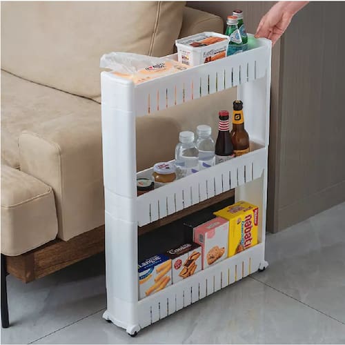 Carrinho Organizador Para Cantos Estreitos Lateral de Fogão Branco -