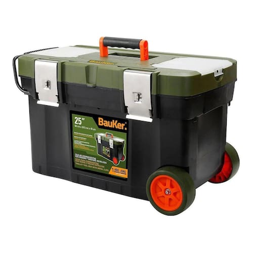 Esqueça aquelas caixas de ferramentas desconfortáveis com o carrinho de ferramentas da marca Bauker, ideal para transportar itens de trabalho com segurança e facilidade, graças às suas 2 rodas e alça extensível de metal que permitirá que você o leve para onde quiser.Feito de plástico muito resistente, este carrinho de ferramentas de 36,5x64x40 cm possui compartimentos internos que você pode remover caso precise de mais espaço para ferramentas maiores. Desta forma, dá-lhe uma ótima organização de cada um dos itens.Este carrinho de ferramentas básico pesa 7 kg e você pode limpá-lo facilmente em caso de manchas ou poeira.