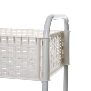 Características: - Organizador com 3 Cestos: Perfeito para separar e organizar diferentes itens, facilitando o acesso e a visualização do conteúdo. - Cor Branco: O design clean e neutro se adapta facilmente a qualquer ambiente, proporcionando um visual elegante e moderno. - Material Durável: Fabricado em aço termoplastificado e plástico, garante resistência e durabilidade ao produto, oferecendo suporte seguro para seus objetos. - Fácil Limpeza: Para manter o carrinho sempre impecável, basta utilizar sabão ou detergente neutro e uma esponja macia, evitando o uso de solventes, objetos cortantes ou abrasivos.