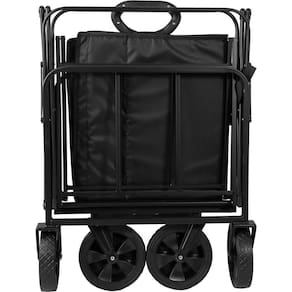 Prático e fácil de usar, possui bolsa em lona removível e conta com estrutura dobrável que facilita o armazenamento, ocupando pouco espaço. Conta ainda com cabo extensível e dois bolsos na parte frontal.