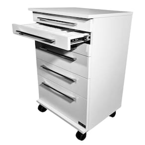 5 (cinco) gavetas. Ter cinco gavetas em uma mesa auxiliar oferece um excelente aproveitamento de espaço, permitindo a organização eficiente de materiais e documentos. As gavetas proporcionam fácil acesso a itens essenciais, mantendo o ambiente arrumado e funcional. Além disso, essa quantidade de compartimentos facilita a separação de diferentes categorias de objetos, promovendo maior praticidade no dia a dia e otimizando o tempo de trabalho em consultórios e clínicas.