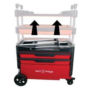 Outro diferencial do modelo é sua versatilidade. Com dimensões ajustáveis, o carrinho pode ser utilizado em sua configuração estendida, oferecendo uma altura de 995 mm, ou dobrada, facilitando o transporte e armazenamento em locais compactos. Além disso, suas gavetas e compartimentos foram projetados para maximizar o espaço útil, garantindo que todas as ferramentas fiquem organizadas e ao alcance das mãos.
