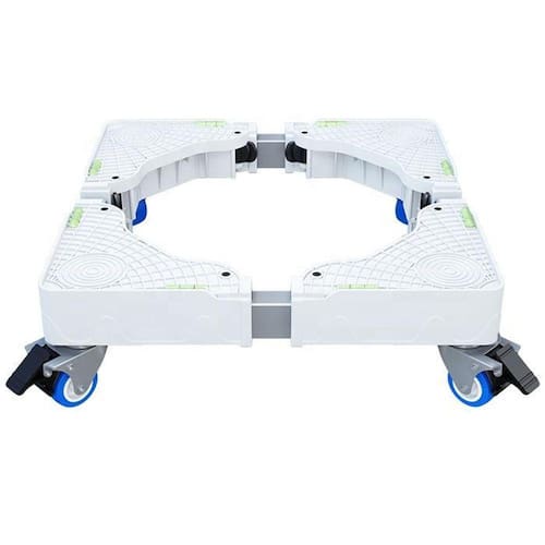 Suporte multiuso - Fácil montagem em 4 módulos.- Número de rodas duplas com travas PVC : 4- Ajuste de largura fácil, sem uso de parafusos e já montado na caixa - Nível bolha para alinhamento.- Alta capacidade de carga.- Facilidade e segurança na movimentação.- Dimensões: Altura:10 cm Largura dos lados:45-75 cm e 45-75 cm medida exclusiva - Capacidade de carga:800 kg- Material: Polipropileno e tubo de aço inoxidável- Peso:4 kg- Cor: branco- Ideal para elevar máquina de lavar, geladeira, freezer, tanquinho, secadora ou objetos pesados. Maior praticidade para remoção e limpeza em áreas de serviço, cozinhas, varandas, entre outros locais. Livre seu eletrodoméstico da umidade que corrói e reduz a vida útil do seu equipamento. Marca: Aj Som Acessórios Musicais