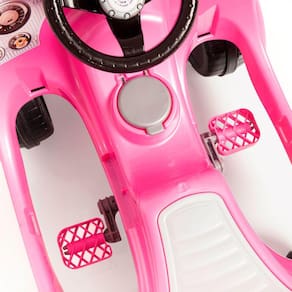 Controle de direção: Guiada pelo adulto com facilidade e segurança para manobrar; Encaixe e desencaixe o aro com praticidade; Encaixe e desencaixe o empurrador com praticidade; Mais facilidade para pedalar; Tração por correia; Com aro protetor; Com apoio de pés; Peças didáticas e buzina; Rodas com borracha para não derrapar; Idade Recomendada: A partir de 12 meses; Certificação de Segurança do INMETRO; Suporta até 30 Kg; Cor: Rosa.