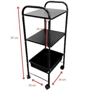 Carrinho porta esmalte auxiliar manicure 2 bandejas em plástico polipropileno PP super resistente, estrutura em ferro com pintura eletrostática, mais resistente á riscos. Produzido com materiais de alta qualidade, proporcionando maior durabilidade Possui 4 rodinhas. Altura: 46 cm x Profundidade 30 cm x Largura 40 cm Marca: Não Informado