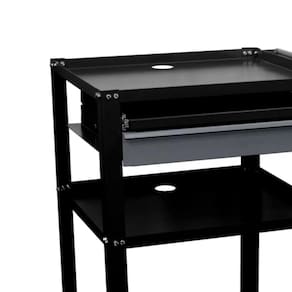 Possui uma gaveta e suporte teclado na parte superior.