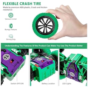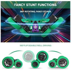 O Carro de Acrobacias RC faz giros de 360 graus em ambos os lados, correndo para derrapar e virar o carro RC por todo lugar. Este carro de acrobacias RC para crianças gira como um ciclone louco com efeitos de iluminação incríveis. Você pode controlar o carro RC em qualquer direção com seu controle remoto. Com controle de 2,4Ghz anti-interferência, permite que vários carros de controle remoto corram ao mesmo tempo. Equipado com motores elétricos potentes, pneus de borracha antiderrapantes e construção resistente a impactos. Ideal para terrenos diversos como grama, asfalto, estradas de pedra, areia, etc. Um presente perfeito para crianças de 3 a 12 anos em qualquer ocasião. Aproveite o tempo feliz em família e a alegria de controlar.