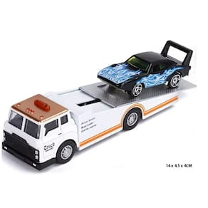 Funcionalidade Realista: A plataforma do reboque é projetada para transportar outros veículos em miniatura (1un inclusa), adicionando uma camada extra de interatividade e realismo. As crianças podem carregar e descarregar seus carrinhos favoritos, criando cenários de resgate, transporte e muitas outras histórias.