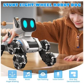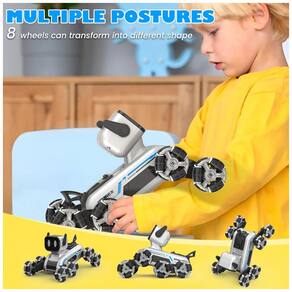 O conjunto oferece dois modos de controle: controle remoto 2,4GHz para operação tradicional e pulseira de detecção de gestos para comandos de movimento sem fio. O sistema de rádio permite operação estável em distâncias típicas de brinquedos de controle remoto, com resposta rápida a acelerações, frenagens e mudanças de direção. Há ainda modos de acrobacia pré-configurados que executam sequências de manobras, como mudanças de postura, deslocamentos rápidos e giros com efeitos sonoros. ? ?A base utiliza rodas com pneus de alta tração e estrutura plástica dimensionada para suportar uso repetido em pisos lisos. O produto acompanha baterias recarregáveis para o veículo, com recarga via cabo USB, e utiliza pilhas AAA no controle remoto. O formato de cachorro robótico foi pensado para atrair crianças interessadas em robôs e carrinhos acrobáticos em um único brinquedo.