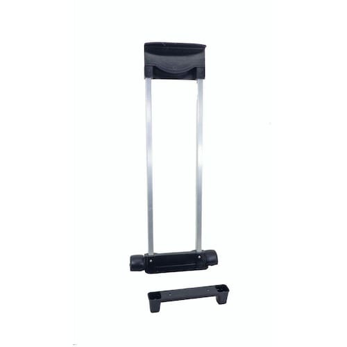 Suporte com rodinhas para substituição em mala de viagem 60 cm de altura Suporte com Haste de alumínio e rodinhas duplas em cada lado - Indicada para substiuição em mala de viagem - Instalação deverá ser feita por um profissional ( sapateiro ), necessita ser arrebitado - Modelo a ser escolhido é conforme a altura da mala nas costas podendo variar até 1 cm. Modelo 60 cm:- medidas totais: 65 cm altura (haste encolhida ) x 31 cm largura ( rodinha a rodinha ) , encaixe da mala 60 cm, haste esticada 98 cm - peso do produto 820 gramas- Acompanha pé frontal - Parafusos/ arrebites não incluso Marca: Paulitec