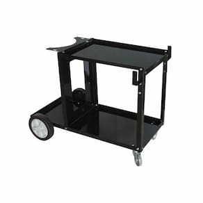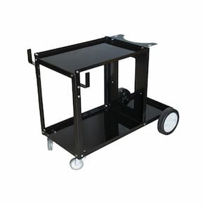 O carrinho possui duas rodas giratórias e duas rodas fixas, que facilitam o transporte em superfícies lisas ou irregulares. Além disso, conta com duas prateleiras laterais, perfeitas para o armazenamento de acessórios como eletrodos, consumíveis e ferramentas.