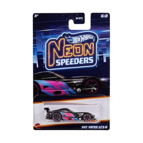 Os Hot Wheels® Neon SpeedersTM oferecem grande estilo aos carros die-cast com cores atraentes que se destacam na multidão