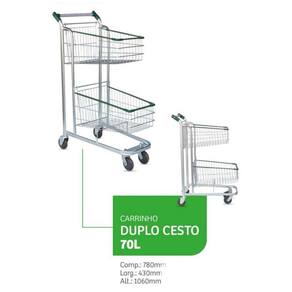 Carrinho Supermercado Compra Tubular Zincado Cesto Duplo 70L