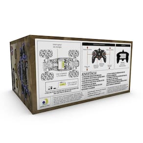 Além disso, oferece 10 funções e tração nas 4 rodas, permitindo que o veículo se desloque para os lados e realize manobras 360, podendo fazer movimentos e desviar de obstáculos mais difíceis