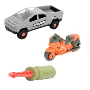 O Carrinho acompanha uma moto e uma ferramenta que permite a criança montar e desmontar os elementos de forma independente. O conjunto inspira criatividade e desperta a imaginação. Cada momento de diversão é uma nova história.