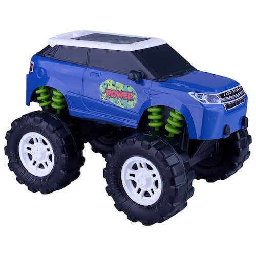 As rodas grandes e amortecedores são a beleza desse carrinho. Com material plástico sendo fácil a diversão por uma criança.