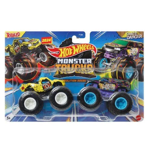 Os Monster Trucks Demolition Doubles da Hot Wheels em escala 1:64 estão prontos para esmagar seus rivais! Este pacote da Monster Trucks para ataques épicos são propositalmente combinados para batalhas cara a cara com suas rodas gigantes e grandes personalidades! Este pacote inclui dois oponentes e a embalagem fornece informações sobre cada um, incluindo nome, tipo de caminhão, força, ataque de colisão exclusivo e motivação para uma excelente narrativa!