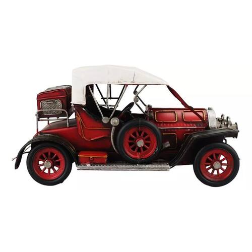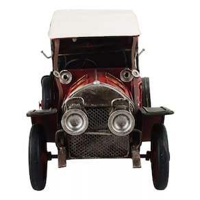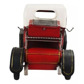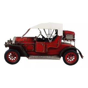 Enfeite decorativo em forma de carro antigo vermelho com 15 x 30 x 13 cm de dimensão, detalhes e cores muito realista. Material: metal; Atenção: este produto tem apenas função decorativa, não é um brinquedo e nem um carro de verdade!